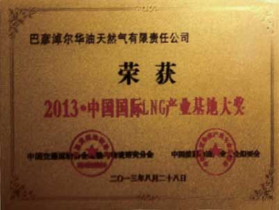 was awarded the " International LNG Industry Base Award in China" in 2013